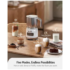 Funções principais (5 em 1): Espuma quente densa, espuma quente leve, espuma fria, aquecimento de leite, preparo de chocolate quente