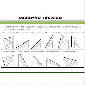 Características : Ângulos dos esquadros : 30/60/90º Tamanho : 32 cm Espessura : 2mm padrão desenho técnico Adicionas : sem chanfro e sem marcações Marca : fenix