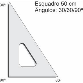 Características : Ângulos dos esquadros : 30/60/90º Tamanho : 50 cm Espessura : 2mm padrão desenho técnico Adicionas : sem chanfro e sem marcações Marca : fenix