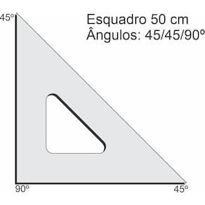 Características : Ângulos dos esquadros : 45/45/90º Tamanho : 50 cm Espessura : 2mm padrão desenho técnico Adicionas : sem chanfro e sem marcações Marca : fenix