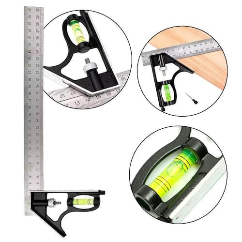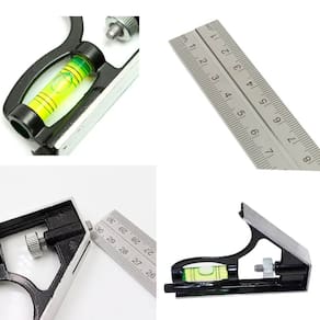 Régua em aço inoxidável Corpo em liga de alumínio Resistente à corrosão e ao desgaste Escala de ajuste rotativa Indicador de nível embutido Medição: 30cm