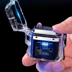 Esqueiro eletrico led A super lanterna isqueiro plasma transparente usb prova dagua apresenta um design inovador e futurista, com seus circuitos visíveis. Sua construção resistente à água é ideal para uso ao ar livre e sua lanterna proporciona ainda mais conveniência. Além do design inovador, possui uma lanterna de led acoplada.