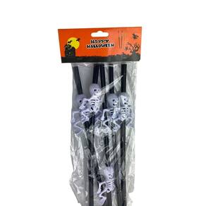 Canudo Com Caveira Laranja Ou Preto Halloween 20 Unidades