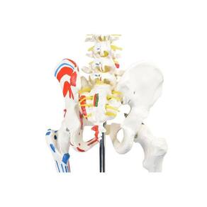 Modelo anatômico de esqueleto humano de 1,70 cm de altura aproximadamente; Confeccionado em PVC, com pintura feita à mão e cores realísticas. Apresenta alta fidelidade anatômica, origens e inserções Musculares do lado esquerdo (Pintadas em Vermelho e Azul); Composto por todos os ossos, montado sob-base com rodas e haste de alumínio; Com o modelo anatômico de esqueleto SD-5001/B podemos identificar do lado esquerdo inserções e origem muscular em cores azul e vermelho respectivamente e é possível identificar os seguintes ossos entre outras estruturas: * Ossos do Crânio (Osso Frontal, Parietal, Nasal, Occipital, Zigomático, Maxilar, Palatino, Temporal, Esfenóide, Etimóide, Vômer, Mandíbula, Dentes extraíveis); * Suturas: Serradas, Escamosas e Planas; Ossos da coluna vertebral: identificação de prolapso entre as vértebras L3/L4); * Vértebras: C1-C7, T1-T12, L1-L5, S1-S5, CO1-CO4; * Discos intervertebrais; * Osso hioide; * Plexos Nervosos, * Ossos do Tórax (Osso esterno, Costelas) * Ossos do Membro superior (Úmero, Ulna, Rádio, Ossos da Mão, Clavícula, Escápula), * Ossos do membro inferior (Fêmur, Patela, Tíbia, Fíbula, Ossos do Pé), * Ossos da Pelve (Ílio, Ísquio, Púbis); * Origens e Inserções dos músculos (Pintados): Cabeça, Pescoço, Tronco, Membro Superior e Membro Inferior.