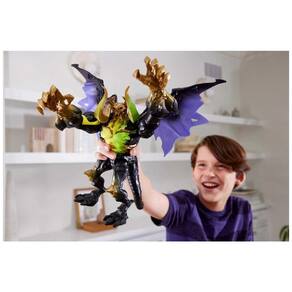 Esta figura de ação Cosmic Terror Skeletor é inspirada na terceira temporada da série Netflix, HeMan e The Masters of the Universe, e apresenta uma versão de luxo do vilão final. Com 15 pontos de articulação, incluindo as asas que podem ser abertas, esta figura de ação está pronta para recriar movimentos e poses característicos e causar medo nos corações durante os conflitos como o vilão definitivo. As enormes garras têm uma ação de ataque dramática e as asas do dragão são espetaculares, com uma decoração especial do Terror Cósmico, elas se espalham por 16 polegadas de largura Uma cauda semelhante a um dragão equilibra as costas, enquanto chifres pontiagudos completam o visual assustador. Esta figura especial do Esqueleto, superdimensionada com 24,13 cm de altura e 21,59 cm de largura, se elevará sobre os outros personagens HeMan em escala de 7 polegadas. Prepare se para reconstituir o bem cósmico vs. conflitos malignos ou criar uma exibição ampla. Cores e decoração podem variar. Outras figuras vendidas separadamente e sujeitas a disponibilidade. É um ótimo presente para fãs de MOTU com 4 anos ou mais.