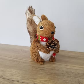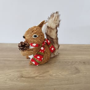 ESQUILO EM PALHA NATURAL 22cm - 23cm DE ALTURA, COM PINHA NATURAL E CACHECOL DE LÃ