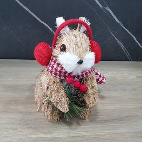 ESQUILO PALHA NATURAL COM FONE 14cm - 14cm DE ALTURA, COM ADORNO E CACHECOL