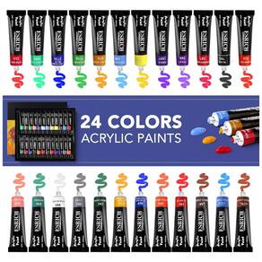 O conjunto tem 12 PCS pincéis, 24 tubos de cores 12ml, 0,4 oz tinta acrílica, 2 PCS paleta, um cavalete, 12 PCS , 4 tamanhos de prancheta em branco, 5 PCS , 5 tamanhos de facas de tinta, 2 Copo de escova PCS, 2 esponjas de arte PCS e uma caixa de presente. O conjunto é e não tóxico. 24 cores de tinta vibrantes em conformidade com o certificado ASTM D 4236, seguras e amigáveis, as telas de arte são fáceis de colorir. Todas as ferramentas de pintura podem torná lo imerso no processo de criação artística. O conjunto contém os materiais de pintura de arte mais completos, é perfeito para artistas, estudantes, adolescentes, crianças e pintores de todos os níveis. Ideia maravilhosa de presente para seus amigos e familiares que gostam de pintar Marca: Não Informado