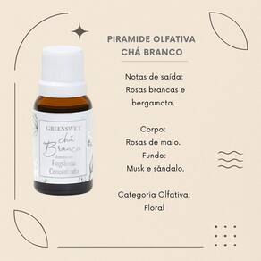 Essencia Chá Branco Classica 15ml Greenswet Atenção: As cores do produto podem variar de acordo com as configurações do seu monitor. Os óleos para difusor são de alta qualidade e estão disponíveis em várias fragrâncias. A embalagem é de vidro âmbar, ideal para proteger o conteúdo. O rótulo identifica a essência. Cada frasco contém 15ml e pode ser em difusores elétricos e de vela. Fragrância: Chá Branco Aroma delicado, elegante e acolhedor. Um buquê suave de flores brancas que traz leveza, tranquilidade e uma sensação de sofisticação para o ambiente. Pirâmide Olfativa: Saída: Rosas Brancas e Bergamota Corpo: Rosas de Maio Fundo: Musk e Sândalo Categoria Olfativa: Floral Observações: Os objetos nas imagens são apenas ilustrativos. Produtos e cores podem ter pequenas variações.