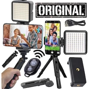 Estabilizador de mão com suporte para celular e câmera, inclui luminária LED recarregável e controle Bluetooth. Permite movimentos suaves em vídeos, uso vertical/horizontal do celular, e pode ser montado em tripés, sliders e dollies. Possui clipe de silicone para proteção do smartphone e altura ajustável.Vendido e entregue por Olist Top