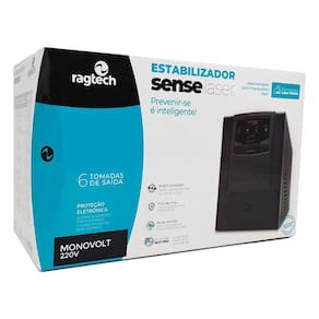 Estabilizador Ragtech Sense Laser 2000Va, Monovolt 220V/220V, 6 Tomadas - 20Sel3548 Marca: ragtech Modelo: sense laser P/n: 20sel3548Legenda:M2 - produtos com tensão de entrada e saída fixa em 220v Estabilizador especialmente projetado para proteger impressoras 3d, plotters, computadores e equipamentos de informática em geral. Não permite distúrbios na saída provocados pelos picos de corrente comuns nas impressoras laser, evitando desgaste prematuro provocado pelos estabilizadores convencionais. Especificações: Potência nominal: 2000va/w Tensão de entrada: 220v Tensão de saída: 220v Corrente de ent.: 11a Faixa de entrada: 184v a 272v Regulação de saída: +/- 6% Frequência de operação: 60hz Tempo de resposta: 1 ciclo de rede Rendimento: 94% Distorção harmônica total: zero Número de tomadas: 6 tomadas Proteção de sobretemperatura: desligamento e rearme automático Proteção de sobretensão de saída: +10% / -10% Proteção de sobrecarga de saída: =120% Proteção contra surtos de tensão: varistor Grau de proteção de umidade: ip00 Recursos Tecnologia laser sense - projetado para impressora laser Proteção eletrônica - autodesligamento por subtensão, sobretensão, sobrecarga, curto-circuito e sobretemperatura Microprocessado - precisão digital no controle da energia Gabinete antichamas e robusto - não propaga fogo e suporta alto impacto Power monitor - informa a potência conectada em 4 níveis Ampla sinalização - indica o estado da rede através de 4 leds Protetor térmico rearmável - desliga em sobrecarga e sobretemperatura Filtro de linha - contra distúrbios na rede elétrica Fast rms - regulação precisa com resposta ultrarrápida, o mais veloz na sua categoria 1 ciclo de rede Ideal para: Conversor de tv Voip Recarregadores Telefone / pabx Dvd player / blu-ray player K station Tv's/smarttv's Notebooks / ultrabooks / netbooks Monitores Aparelhos box tv Videogames Ponto de venda pdv Roteador/modem Computadores Home theater Projetores Impressoras jato de tinta ou tanque / multifuncional jato de tinta ou tanque Impressora e multifuncional laser Atenção: Antes de ligar o equipamento verifique se a mesma atende a voltagem especificada Antes de utilizar o estabilizador é necessário checar se o consumo ou potência em watts do equipamento a ser ligado é compativel com o estabilizador em questão. Caso contrário pode haver sobrecarga e/ou queima do estabilizador. Não recomendado o uso em eletrodomésticos