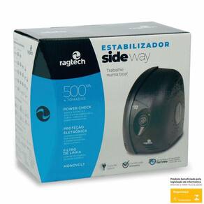 MARCA: RAGTECH MODELO: SIDE WAY P/N: 20SDW5317 A Ragtech inova mais uma vez com a linha de estabilizadores Side Way, harmonizando tecnologia e design. Apresenta recursos avançados e exclusivos: tempo de resposta ultra rápido [o mais veloz de sua categoria] e guia de cabos para organizar a saída dos cabos conectados. Possui tecnologia true rms que garante regulação precisa mesmo em redes distorcidas. São produzidos com padrão de qualidade que atendem à norma de segurança e desempenho NBR14373:2006 da ABNT. ESPECIFICAÇÕES: Potência Nominal: 500VA Tensão de entrada: 115V Tensão de saída: 115V Corrente nominal de entrada: 4,3A Faixa de entrada: 95V a 147V Regulação de saída: +/- 6% Frequência de operação: 60Hz Tempo de resposta: 1 ciclo de rede Rendimento:>94% Número de tomadas: Sufixo q - 4 tomadas Proteção contra surtos de tensão: Varistor Proteção contra sobretemperatura Proteção sobrecarga na saída:<=200% Dimensões aproximadas (A x L x P): 17.3 x 11.7 x 19.2 cm Grau de proteção: IP 00 RECURSOS Guia de cabos [exclusivo] Proteção eletrônica contra seleção incorreta da tensão de rede Microprocessado. Precisão digital no controle da energia. Filtro de linha contra distúrbios da rede elétrica Tecnologia Fast RMS [exclusivo] Ultra-Wide Range.Corrige ampla variação da rede elétrica de entrada. Power Check. Mede a potência e desliga por sobrecarga, curto circuito ou sobretemperatura IDEAL PARA: * Conversor de TV * Voip * Recarregadores * Telefone / PABX * DVD Player / Blu-Ray Player *Dock Station * Tv's/SmartTv's * Notebooks/Ultrabooks/Netbooks * Monitores * Aparelhos Box TV * Videogames * Ponto de Venda (PDV) * Roteador/Modem * Computadores * Home Theater * Projetores * Impressoras Jato de Tinta ou Tanque/Multifuncional Jato de Tinta ou Tanque * Impressora e Multifuncional Laser ATENÇÃO: * ANTES DE LIGAR O EQUIPAMENTO VERIFIQUE SE A MESMA ATENDE A VOLTAGEM ESPECIFICADA* ANTES DE UTILIZAR O ESTABILIZADOR É NECESSÁRIO CHECAR SE O CONSUMO OU POTÊNCIA EM WATTS DO EQUIPAMENTO A SER LIGADO É COMPATIVEL COM OESTABILIZADOR EM QUESTÃO. CASO CONTRÁRIO PODE HAVER SOBRECARGA E/OU QUEIMA DO ESTABILIZADOR.* NÃO RECOMENDADO O USO EM ELETRODOMÉSTICOS!