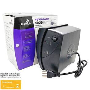 Modelo: 20SDL5380 Especificações: Potência Nominal: 500VA/W Corrente Nominal de Entrada em 115V: 2,6A | 4,3A Saída: 115V Faixa de Entrada: 92V a 150V (em rede 115V) Regulação de Saída: +/- 6% Frequência de Operação: 60GHz Tempo de Resposta: <=1 ciclo de rede Rendimento 100% de Carga: 94% Distorção de Tomadas: Sufixo "q" - 4 tomadas Proteção de Sobretemperatura: Sim Proteção Sobretensão de Saída: +10%/-10% Proteção Sobrecarga na Saída: =170% Proteção Contra Surtos de Tensão: Varistor Grau de Proteção de Umidade: IP00 Peso: 1,66Kg Dimensões AxLxP: 192x113x182 mm Conteúdo da Embalagem: 01 Estabilizador Ragtech Side Laser Laser 500VA