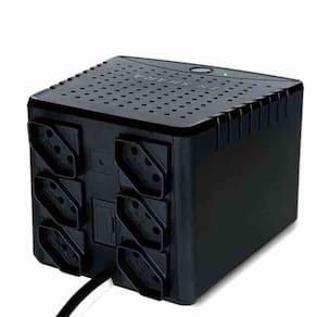 Quantidade de tomadas: 6 tomadas 10A - NBR 14136 Tensão de entrada: 220V Tensão de saída: 220V Filtro de linha integrado: Sim Proteção contra Subtensão 220V: 174V Proteção contra Sobretensão 220V: 272V Rendimento: >92% Frequência de rede: 50Hz ou 60Hz(+/-5%) com detecção automática Supressor de transientes para rede elétrica: 275Vrms, 35J*, 2,5kA** Grau de proteção: IP 20 Peso: 2.90kg Altura: 120mm Largura: 170mm Comprimento: 175mm