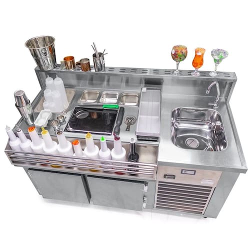 Descrição do ProdutoEstação Bar 1.70 MT Com Cuba A Direita FrigoproInformações do Produto01 cuba piaNichos para Cubas gastronomicas de 1/6 65mmNicho para cuba 1/2 200cm para geloNicho para placa de corte com furo de escoamento de detritos para cuba gastronomicaPingadeira superior para apoio porta taçasNicho porta garrafas com grande tubular frontal02 portasCaracterísticas do Produto:Temperatura: 0° a +°7CIsolamento térmico em poliuretano injetadoRevestimento externo em Aço inoxidávelPortas com molas de fechamento automáticoPés com sapata de regulagemControlador de Temperatura eletrônico digital com indicador de temperaturaDegelo Automático.10 motivos para você investir em uma estação refrigerada para barFuncionalidade Versátil: A Estação Bar Refrigerada com Pia oferece diversas funcionalidades em um único espaço, incluindo uma cuba para pia, nichos para cubas gastronômicas, espaço para gelo, placa de corte, pingadeira superior e nicho para garrafas. Isso proporciona um ambiente prático e eficiente para o preparo de bebidas.Organização Eficiente: Com nichos específicos para diferentes utensílios e ingredientes, a estação ajuda na organização do espaço, garantindo que os bartenders tenham fácil acesso a tudo o que precisam durante o preparo das bebidas.Estética Atraente: O revestimento externo em aço inoxidável confere um visual elegante e moderno à estação de bar, contribuindo para uma atmosfera agradável no barzinho e atraindo a atenção dos clientes.Economia de Espaço: Com medidas compactas (170x65x96 cm), a estação é projetada para otimizar o espaço, sendo ideal para bares com áreas limitadas. Isso permite a inclusão de uma estação de bar completa mesmo em locais com espaço reduzido.Controle Preciso de Temperatura: O controlador de temperatura eletrônico digital proporciona um controle preciso da temperatura, garantindo que as bebidas sejam servidas na temperatura ideal. Isso é fundamental para manter a qualidade dos drinks e satisfazer os clientes.Eficiência Energética: O isolamento térmico em poliuretano injetado e o degelo automático contribuem para a eficiência energética da estação, ajudando a manter as bebidas geladas sem um consumo excessivo de energia elétrica.Facilidade de Limpeza: O aço inoxidável é fácil de limpar e resistente a manchas, garantindo que a estação de bar esteja sempre higienizada. Isso é essencial para cumprir padrões de segurança alimentar e proporcionar um ambiente limpo e agradável.Durabilidade e Resistência: O uso de materiais como aço inoxidável e o fechamento automático das portas com molas contribuem para a durabilidade e resistência da estação, garantindo um investimento de longo prazo para o barzinho.Atendimento Rápido e Eficiente: Com tudo ao alcance dos bartenders, desde ingredientes até utensílios, a estação agiliza o processo de preparo de bebidas, contribuindo para um atendimento mais rápido e eficiente, especialmente em momentos de maior movimento.Diferenciação e Inovação: Investir em uma estação de bar completa e bem equipada demonstra um comprometimento com a qualidade do serviço, diferenciando o barzinho da concorrência. A inovação no ambiente de preparo de bebidas também pode atrair clientes em busca de experiências únicas.#BrasilCocktails, #BarNoBrasil, #CocktailsBrasil, #DrinkBrasil, #BarBrasileiro, #BartenderBrasil, #SaboresDoBrasil, #GastronomiaBrasileira, #EstacaoDeBarBrasil, #VivaOBrasil, #BebidasNacionais, #CulturaDeBarBrasil, #BrasilGelado, #HappyHourBrasil, #BebidasDoBrasil, #BrasilMixology, #BebidasGeladasBrasil, #EstiloBrasileiro, #InovacaoNoBarBrasil, #BebidasPremiumBrasil.Medidas170x65x96 (cm)