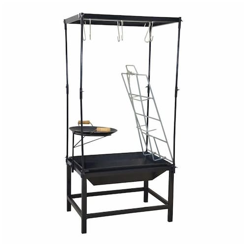 01 Estação Churrasco Fogo Chão Lareira Picanheira Aço e Varal 63x44x43cm.