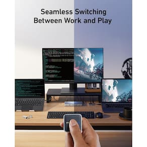 - Comutação perfeita: desfrute de uma troca fácil entre dispositivos USB-C com um único clique, eliminando a necessidade de trocas constantes de cabos. Compartilhe teclados, monitores, mouses e outros dispositivos sem complicações.