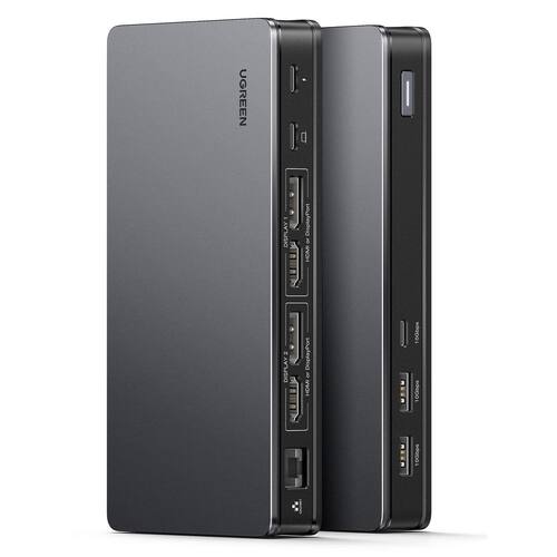 - Modos Muilt-Extended para macOS: Aumente sua eficiência de trabalho com a tecnologia DisplayLink da estação de ancoragem UGREEN USB C para estender dois monitores 4K a 60Hz para sistemas macOS e Windows. Escolha entre modos de exibição estendida ou espelhada sem esforço. (Instalação do driver necessária para funções de exibição e rede)