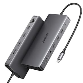 - Estação de ancoragem USB C 13 em 1: inspire mais potencial da porta USB-C do seu laptop com duas portas HDMI, uma DisplayPort, uma porta USB-C 3.2 Gen 2 de 10 Gbps, duas portas USB-A 3.2 Gen 2 de 10 Gbps, duas USB A 3.0, entrega de energia de 100W, leitor de cartão RJ45 de 3,5 mm e SD/Micro SD.
