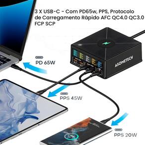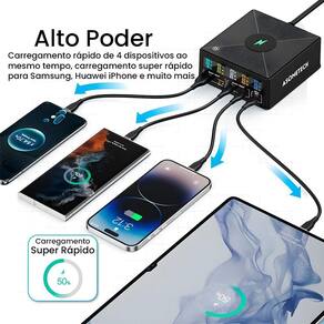 A Estação de Carregamento 160W da ASOMETCH é uma solução versátil e poderosa para quem precisa carregar múltiplos dispositivos simultaneamente. Ideal para escritórios, residências e ambientes onde a conectividade e a eficiência são essenciais, este carregador é equipado com uma combinação de portas USB e USB-C, além de oferecer suporte à carga sem fio. Especificações Técnicas