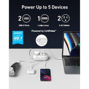 - Faixa de alimentação 5 em 1 GaNPrime para casa e viagens: a estação de carregamento Anker GaNPrime 65W possui 2 tomadas CA, 2 portas USB-C e 1 porta USB-A, permitindo que você carregue vários dispositivos simultaneamente, tornando-a ideal para uso em casa, no trabalho ou durante viagens.