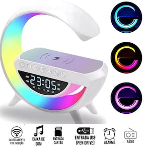 Multifuncional: luz suave, som de alta qualidade e carregamento sem fio.
