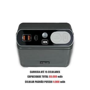 Versátil e potente, esta Estação de Energia é ideal para diversas situações. Com um design leve e compacto, ela se destaca por sua alta capacidade de armazenamento de energia, permitindo carregar seu celular até 15 vezes com uma única carga.