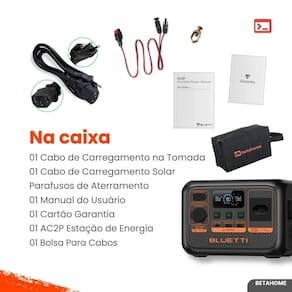 A Estação de Energia Portátil Bluetti AC2P oferece potência de 300W e capacidade de 230Wh, atendendo dispositivos essenciais em qualquer situação. Possui bateria LiFePO4 de longa duração com mais de 3.000 ciclos, pico de 600W e carregamento turbo de 270W que atinge 80% em apenas 45 minutos. Pode ser carregada por tomada, painel solar, carro ou gerador. Pesa apenas 3,6kg, facilitando o transporte. Conta com tela LCD, controle via aplicativo e funcionamento seguro e silencioso.