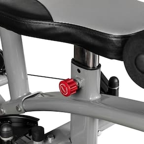 Possui ajuste de altura do banco, que é um diferencial para que usuários com diferentes alturas executem os exercícios de forma correta, além de outros ajustes que ampliam as possibilidades de exercício e o Leg Press opcional acoplável à Estação.