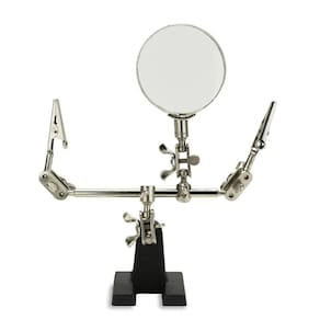 NEIKO 01902 Mão de ajuda ajustável com lupa, auxílio de solda de terceira mão, suporte de estação de fio de solda com clipes de jacaré duplos e uma base pesada, ferramentas de fabricação de miçangas e - Estação de solda manual de ajuda: esta ferramenta útil libera suas mãos para solda, colagem, posicionamento, fixação e montagem seguras de objetos de tamanho pequeno a grande para tarefas que exigem um alto nível de precisão, como aviônicos. - Vidro magnético com suporte: esta mão de solda está equipada com uma lupa de 2x em um braço ajustável para realizar trabalhos de precisão até mesmo nos menores objetos ou peças de trabalho. Com esta ferramenta, você pode alcançar resultados quase perfeitos. - Suporte de encaixe duplo: os grampos de mola jacaré duplos são presos a suportes de arame em braços ajustáveis que seguram com segurança componentes, peças de trabalho, pequenos eletrônicos e aparelhos estáveis para tarefas de solda que exigem precisão e eficiência. - Mão de ajuda ajustável: o espelho e os grampos são montados em juntas esféricas ajustáveis para posicionar e visualizar o trabalho em qualquer ângulo e para servir como mãos extras para visualizar objetos nos ângulos mais difíceis com facilidade. - Estação de solda com base resistente: a base de ferro fundido resistente mantém a unidade na vertical e estável e oferece uma fixação segura que mantém os objetos estáveis enquanto trabalha ou solda componentes. Realize até mesmo o melhor trabalho com esta ferramenta útil.