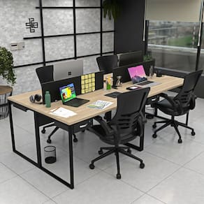 Invista no bem-estar da sua equipe com a estação de trabalho estilo industrial de 4 lugares com gavetas da Linha de Estações de Trabalho da Netmobil.