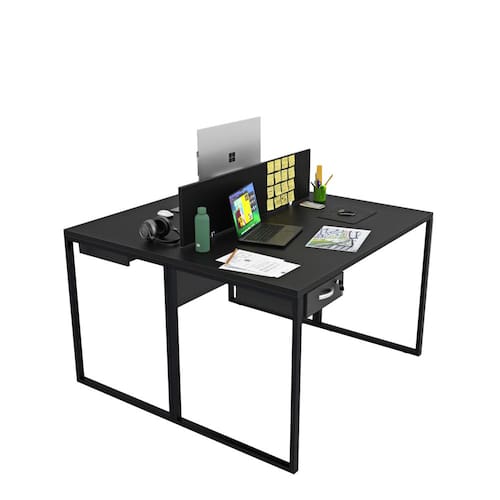 Invista no bem-estar da sua equipe com a estação de trabalho estilo industrial de 2 lugares com gavetas da Linha de Estações de Trabalho da Netmobil.