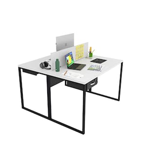 Estação De Trabalho Mesa Plataforma 2 Lugares Com Gaveta Escritório Netmobil - Branco