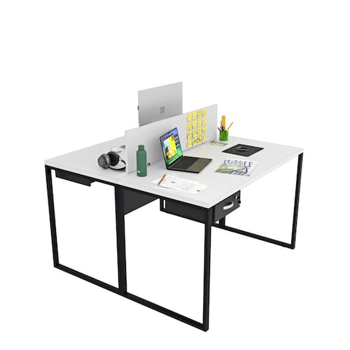 Invista no bem-estar da sua equipe com a estação de trabalho estilo industrial de 2 lugares com gavetas da Linha de Estações de Trabalho da Netmobil.