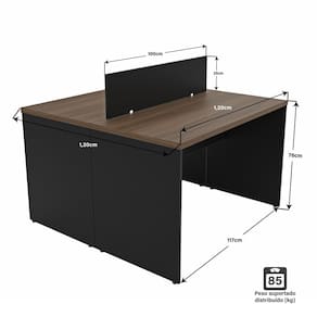Peso suportado (distribuídos por mesa): 85kg (tampo).