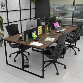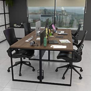 Invista no bem-estar da sua equipe com a estação de trabalho estilo industrial de 4 lugares da Linha de Estações de Trabalho da Netmobil.