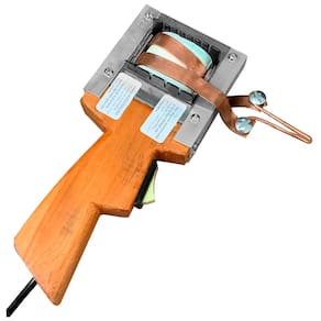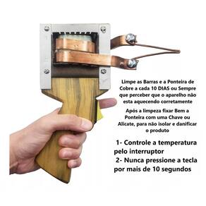 Estanhador tipo pistolo com acabamento robusto e super resistente, cabo em madeira com acabamento envernizado e equipado com interruptor com volta automática, permitindo que o aparelho não fique ligado constantemente. Aquecimento rápido de 15 a 30 segundos.