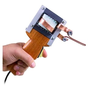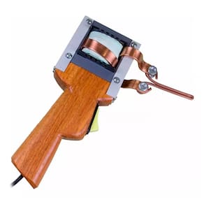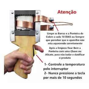 Estanhador tipo pistolo com acabamento robusto e super resistente, cabo em madeira com acabamento envernizado e equipado com interruptor com volta automática, permitindo que o aparelho não fique ligado constantemente. Aquecimento rápido de 15 a 30 segundos.