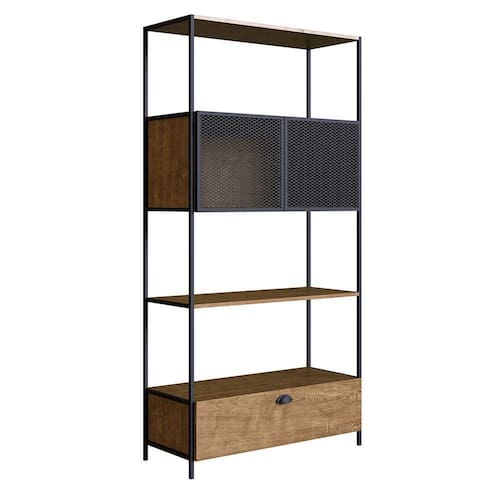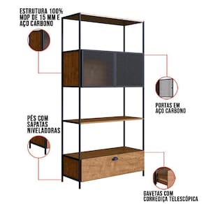 Com a Estante New na cor Vermont e Preto você garante personalidade e praticidade, e na hora de decorar você pode abusar da sua criatividade e fazer do jeito que achar melhor. Produzido em MDP 15mm com acabamento em BP, contém 01 porta é em aço com detalhes de chapa expandida, acabamento em pintura epóxi fosca e fecho magnético, 01 gaveta com puxador metálico e corrediça telescópica com extração total. Seu ambiente ficará bem mais bonito com a estante New. Escolha a sua.