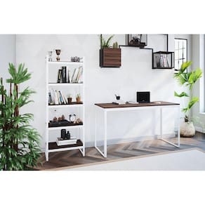 Estante Completa Casa, estilo Industrial, nas dimensões de 150x55x36, com 5 prateleiras produzida em aço com tampos de MDP laminado. As matérias primas utilizadas na produção proporcionam um produto de excelente estabilidade, grande resistência e fácil montagem. O design Industrial, moderno e elegante da Estante Completa Casa é o item que falta para deixar seu ambiente alegre e sofisticado. Os detalhes laterais das prateleiras oferecem mais resistência e praticidade na utilização. Produto Montado: Sim Acabamento da Prateleira: BP Ambiente Principal: Escritório codigo_ean: 7909903003138 Complexidade da Montagem: Baixa: pode ser montado por uma pessoa sozinha Cor: Branco/Nogal Cor do Produto: Branco/Nogal Cor Interna: Branco Escala de Brilho: Semi-Brilho Escala de Brilho da Prateleira: Fosco Itens Inclusos: 1 Estante, 1 Manual de instrução e 1 Kit componentes. Manual de Montagem e Instalação: https://product-hub-prd.madeiramadeira.com.br/711190/documents/48d75488-42e0-45ab-aebf-47eeba08caf6885502estante55.pdf Material da Prateleira: MDP Material Principal: Aço Necessita Montagem: Sim Origem do Produto: Nacional Peso: 11 kg Peso Máximo por Prateleira: 8 kg Possui Espelho: Não Possui iluminação: Não Possui Pés: Não Possui Portas: Não Possui Prateleiras: Sim Possui Vidro: Não Recomendações de Uso, Manutenção e Limpeza: Não utilizar abrasivos na limpeza. Evitar batidas e contato com objetos cortantes. Utilizar pano umedecido com água seguido de pano seco. Sistema de Montagem: Parafusos Suporta Até (kg): 40 kg Marca: Completa Casa
