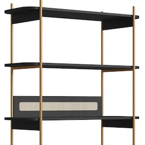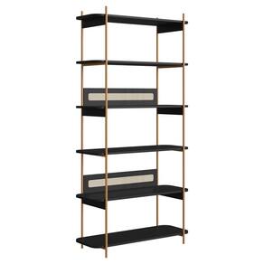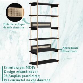 Estante 180 CM 6 Prateleiras Pes Metal Oslo 28965, minimalista, elegante e multifuncional, elaborada para preencher com excelência desde os mais requintados ambientes, quanto aqueles que optam pela sobriedade dos traços artesanais. Estrutura em MDP de 15 mm com acabamento BP e metal. Possui aplique de tela sintética (PVC e poliéster), agregando nobreza ao seu design. Seus pés são confeccionados em tubo metálico em aço e acabamento em pintura epóxi dourada com ponteiras plásticas, evitando atrito no piso. Capacidade de peso suportada: 30 Kg distribuídos, 05 Kg cada prateleira. Com seus traços suaves e paleta de cores acolhedora, ela irá conferir sofisticação e aconchego ao seu ambiente. Este móvel chegará na sua casa separado em 01 volumes.