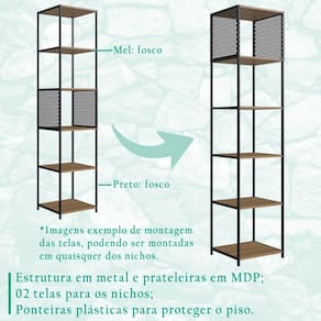 Estante 180 Cm Estilo Industrial Com Tela P1023, conta com estilo industrial que além de atemporal, combina com qualquer tipo de decoração, sinônimo de versatilidade! Tanto sua estrutura em metal, quanto suas prateleiras em MDP, possuem 15 mm de espessura, conta com 05 prateleiras e 02 telas em aço, podendo ser instaladas em lugares distintos da estante, permitindo a personalização da mesma de acordo com seu gosto e/ou necessidade. Sua base possui ponteiras plásticas, evitando riscos no chão de seu cômodo. É o móvel perfeito para você que busca praticidade ao guardar seus itens, aliado à modernidade de um produto conceitual. Este móvel chegará na sua casa separado em 01 volume.