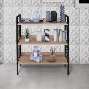 Estante Beta com design moderno e prático onde poderá ser colocada em qualquer ambiente valorizando e dando personalidade. Possui 3 prateleiras em MDP, para colocar livros e objetos. Estrutura em aço carbono pintado, produto de fácil montagem. Produto Montado: Sim Acabamento da Prateleira: BP Ambiente Principal: Escritório codigo_ean: 7908506241664 Complexidade da Montagem: Baixa: pode ser montado por uma pessoa sozinha Cor: Preto Fosco/Carvalho Cor do Produto: Preto Fosco/Carvalho Escala de Brilho: Fosco Escala de Brilho da Prateleira: Não Possui Informações Complementares: Tampo de MDP BP, Resistente a riscos e umidade Itens Inclusos: 1 Estante, Manual de Montagem e Kit Ferragens Manual de Montagem e Instalação: https://product-hub-prd.madeiramadeira.com.br/694200/documents/2632f0c4-3ed9-4be1-b35e-3b4d1e7f94e9ntebeta3prateleirasjul2021.pdf Material da Prateleira: MDP Material Principal: MDP Necessita Montagem: Sim Origem do Produto: Nacional Peso: 13,65 kg Peso Máximo por Prateleira: 5 kg Possui Espelho: Não Possui iluminação: Não Possui Pés: Não Possui Portas: Não Possui Prateleiras: Sim Possui Vidro: Não Quantidade de Nichos: 03 Recomendações de Uso, Manutenção e Limpeza: Limpar com pano levemente umedecido. Não usar produtos abrasivos que possam danificar a superfície do móvel. Sistema de Montagem: Parafuso Suporta Até (kg): 5 kg