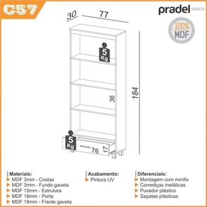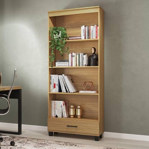A Pradel traz a estante para livros 77cm com gaveta, é ideal para organizar diversos tipos de objetos como brinquedos, livros, pastas. É produzida 100% em MDF, com acabamento UV o que garante brilho e proteção em toda a superfície do móvel. Produto Montado: Sim Acabamento da Gaveta: Pintura UV Acabamento da Prateleira: Pintura UV Ambiente Principal: Escritório codigo_ean: 7908506258051 Complexidade da Montagem: Baixa: pode ser montado por uma pessoa sozinha Cor: Freijó Cor do Produto: Freijó Escala de Brilho: Fosco Escala de Brilho da Prateleira: Fosco Gaveta com Chave: Não Itens Inclusos: 1 Estante, Kit Ferragens e Manual de Montagem Manual de Montagem e Instalação: https://product-hub-prd.madeiramadeira.com.br/694582/documents/9521f1b8-352d-443c-acce-0a87f724cbe7828538c57.pdf Material da Gaveta: MDF Material da Prateleira: MDF Material do Puxador da Gaveta: Plástico Material dos Pés: MDF Material Principal: MDF Necessita Montagem: Sim Origem do Produto: Nacional Peso: 32,5 kg Peso Máximo por Gaveta: 5 kg Peso Máximo por Prateleira: 5 kg Possui Espelho: Não Possui iluminação: Não Possui Pés: 04 Possui Portas: Não Possui Prateleiras: Sim Possui Rodízio: Não Quantidade de Gavetas: 01 Gaveta Recomendações de Uso, Manutenção e Limpeza: Utilizar somente um pano levemente umedecido e em seguida passe um pano seco. Produtos químicos ou abrasivos podem acabar danificando o acabamento do móvel. Sapatas Niveladoras: Não Sistema de Montagem: MONTAGEM COM PARAFUSOS, CAVILHAS E MINIFIX Suporta Até (kg): 5 kg Tipo de Corrediça da Gaveta: Metálica Simples Tipo de Puxador da Gaveta: Externo