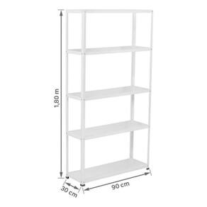 Com 180cm de altura, 90cm de largura e 30cm de profundidade, esta estante oferece amplo espaço para acomodar seus suprimentos, alimentos, utensílios de cozinha e muito mais. Cada uma das cinco prateleiras possui uma capacidade impressionante de até 70kg, proporcionando um total de até 350kg de capacidade de armazenamento.