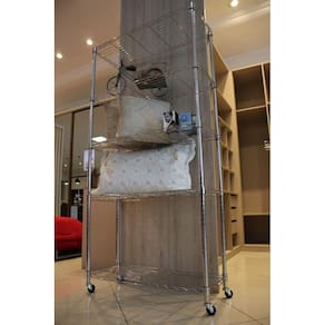 Com capacidade de 50kg por prateleira, essa estante é feita em aço cromado aramado, o que garante a sua durabilidade e resistência. Suas prateleiras são ajustáveis, permitindo que você organize seus itens da forma que preferir. Além disso, a estante pode ser usada com rodas giratórias, o que facilita ainda mais o seu deslocamento.