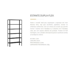 Itens Inclusos 01 Estante Dupla Flex Preta 1,76m x 0,30 com 06 Bandejas - Amapá