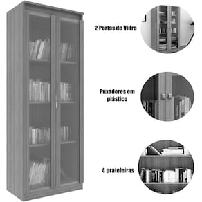 Característica da Estante Armário Alta Livreiro Multiuso Office 2 Portas Vidro: