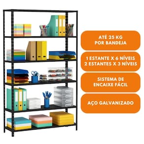 Produto de fácil montagem, com a simples colocação de porcas e parafusos unindo as bandejas às colunas. Perfeita para escritórios, papelarias, escolas, estoques de loja ou até mesmo ambientes residências.