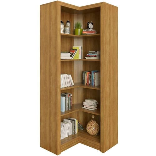 Estante Armário De Canto Aberto P/ Escritório 5 Prateleiras Amêndoa